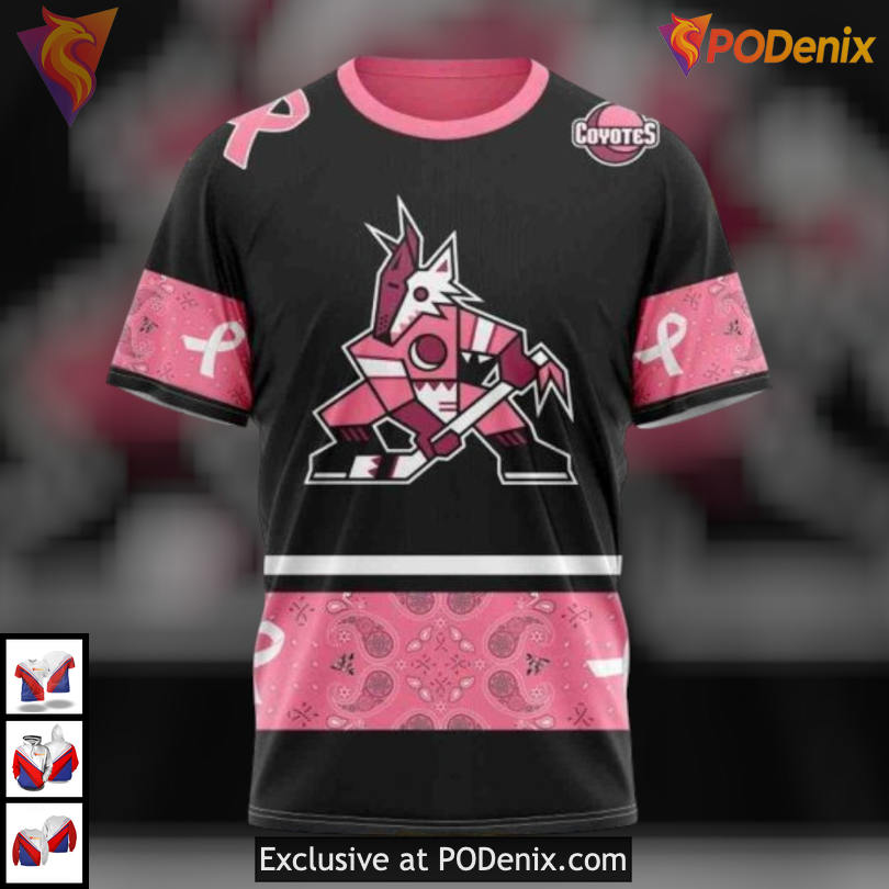 Stylish Pink Arizona Coyotes Womens Apparel with Creative Breast Cancer Awareness Design