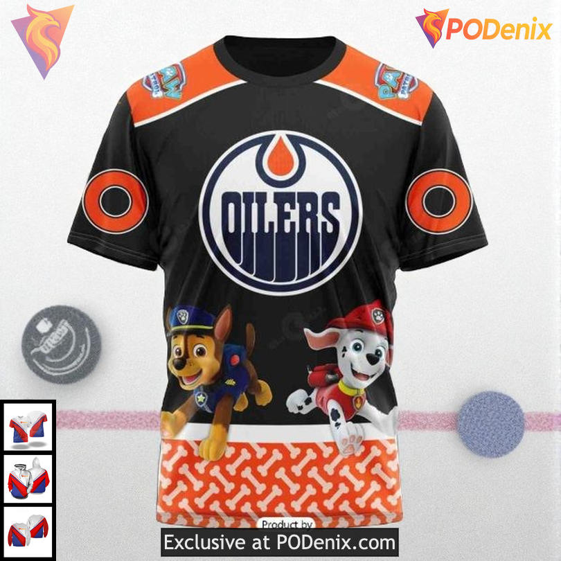 Custom Edmonton Oilers 3D Apparel Featuring Paw Patrol for Young Fans