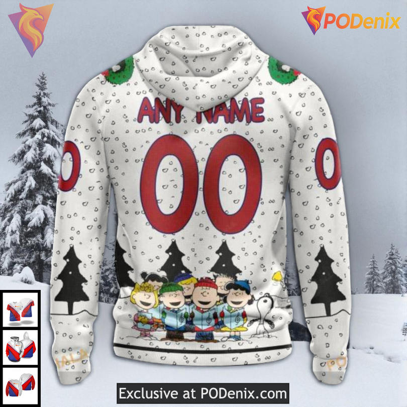 Experience the vibrant energy of the Montreal Canadiens Full Print Hoodie, featuring beloved characters from the Peanuts universe. The design captures a fun blend of fandom and nostalgia, showcasing Snoopy in a playful, hockey-themed setting that brings cheer to any outfit.