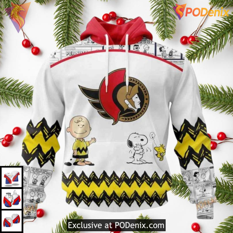 Elevate your game day experience with the Ottawa Senators Hoodie 3D, designed for the ultimate fan who wants to celebrate their love for hockey and the Peanuts universe in style.