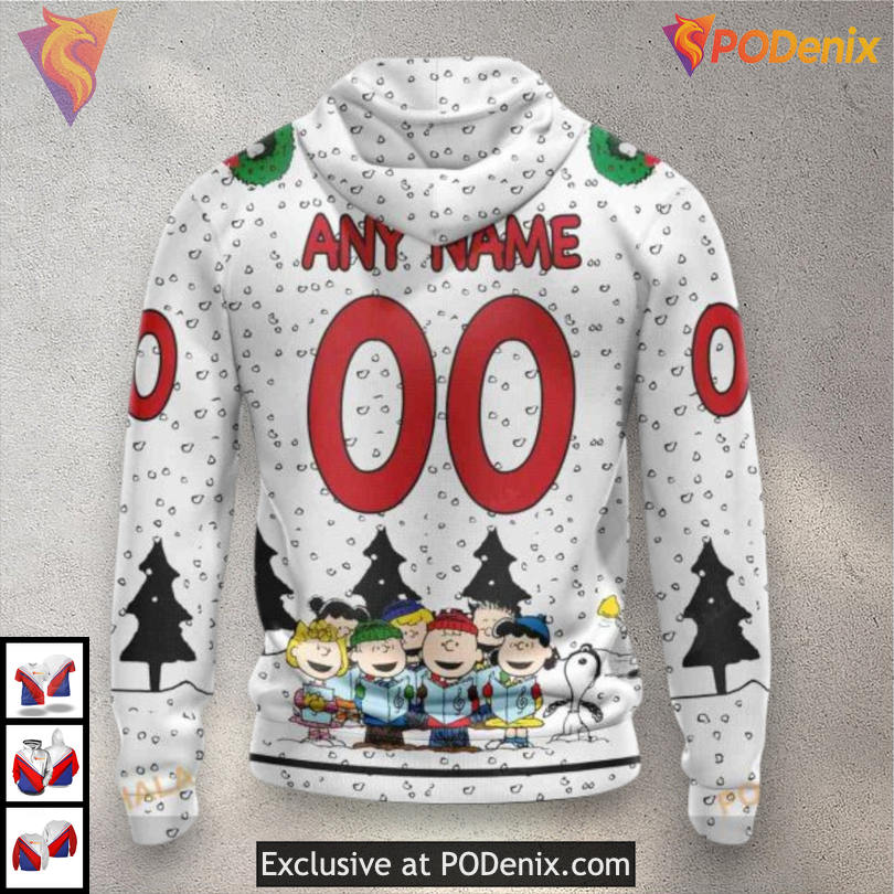 The Carolina Hurricanes Personalized 3D Hoodie features vibrant colors and playful designs inspired by the beloved Peanuts character, Snoopy. With a unique 3D effect, this hoodie captures the spirit of fun and loyalty that fans share for their team and favorite characters.