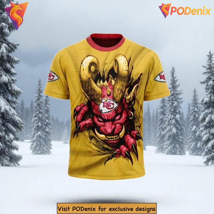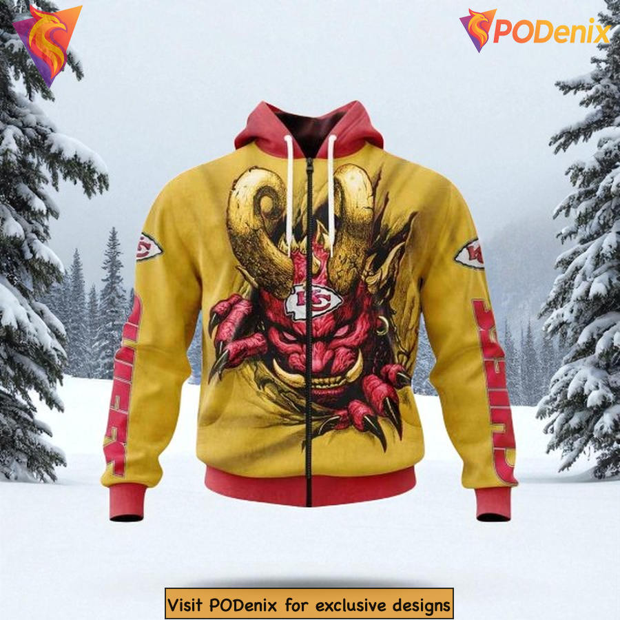 Personalized Kc Chiefs Hoodie 3D brings bold energy with a fierce horned creature design and Kansas City spirit. Add your name and number for a quote-worthy look that screams team pride and personality.