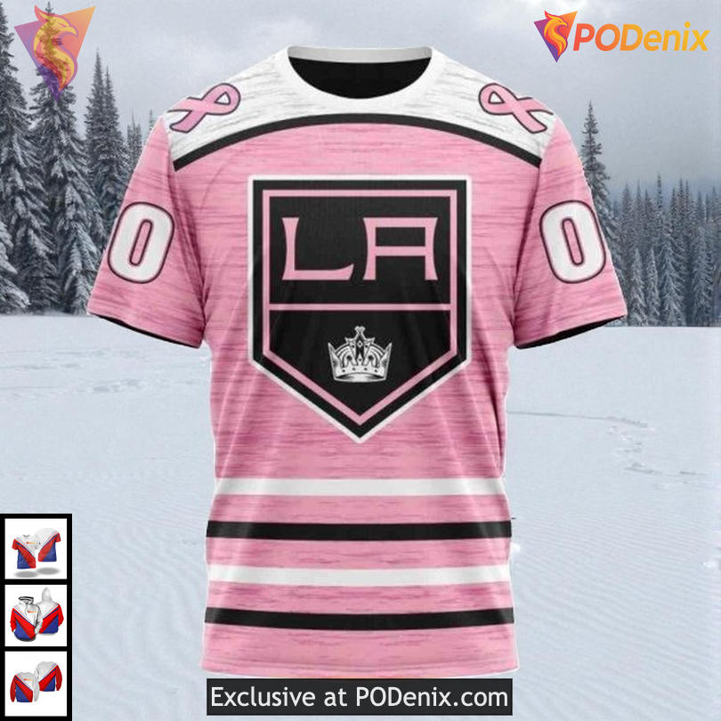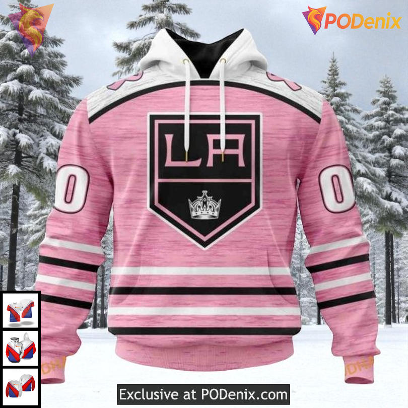 Custom Los Angeles Kings Winter Apparel: Pink Breast Cancer Awareness Hoodie for Fans