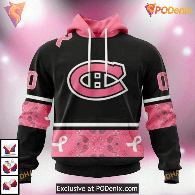 Stylish Pink NHL Canadiens Hoodie for Breast Cancer Awareness and Support