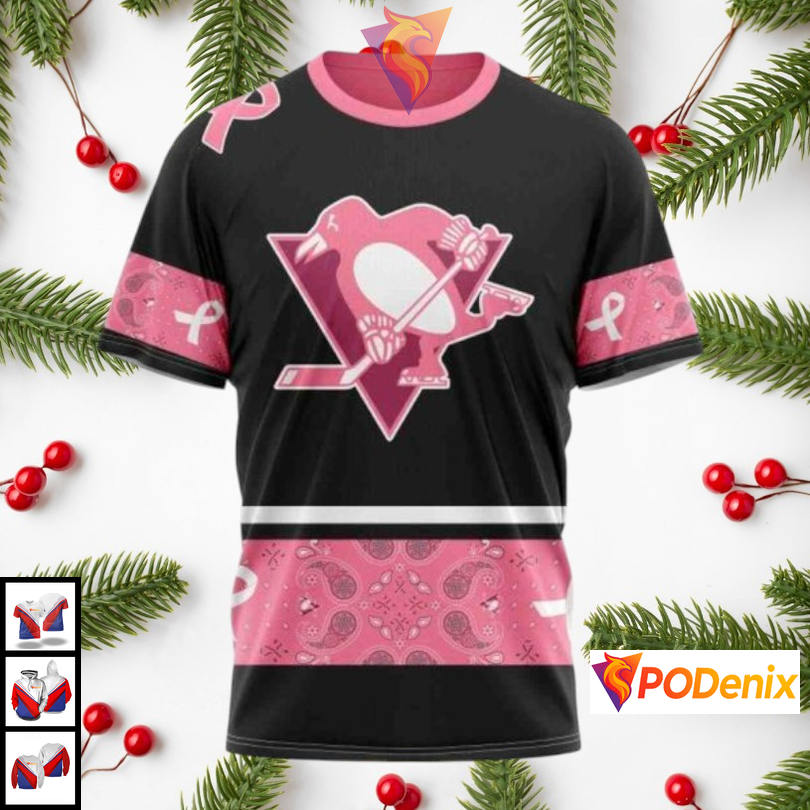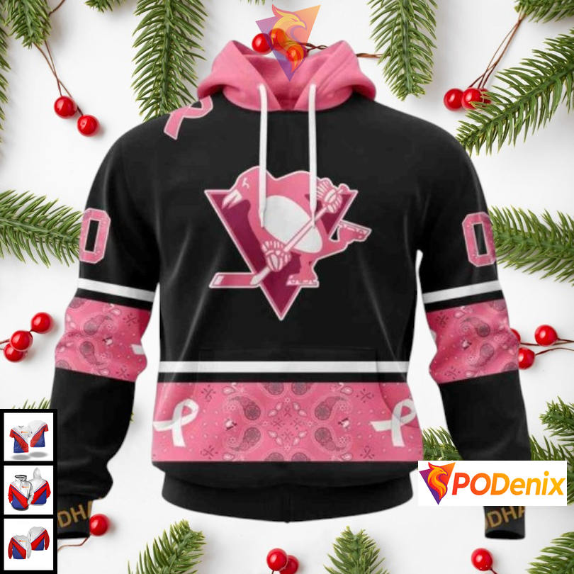 Custom Pittsburgh Penguins Breast Cancer Hoodie – A Vibrant Tribute to Unity and Awareness