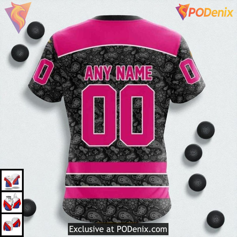Showcasing a vibrant pink palette, the San Jose Sharks Hoodie features eye-catching graphics that celebrate breast cancer awareness. This custom design embodies the spirit of the event, uniting fans in a powerful message of hope and resilience.