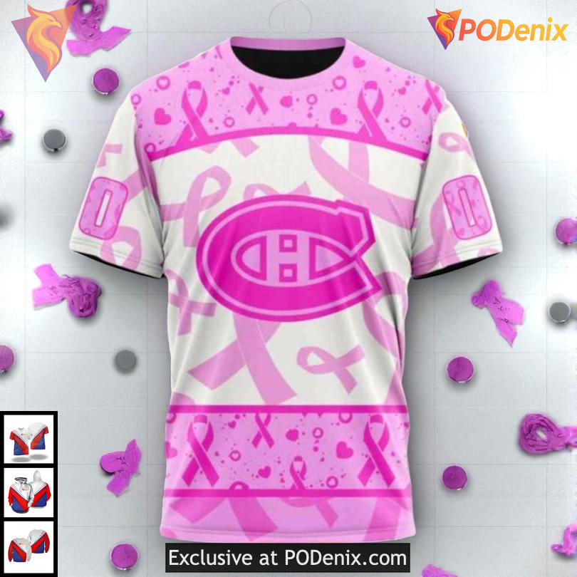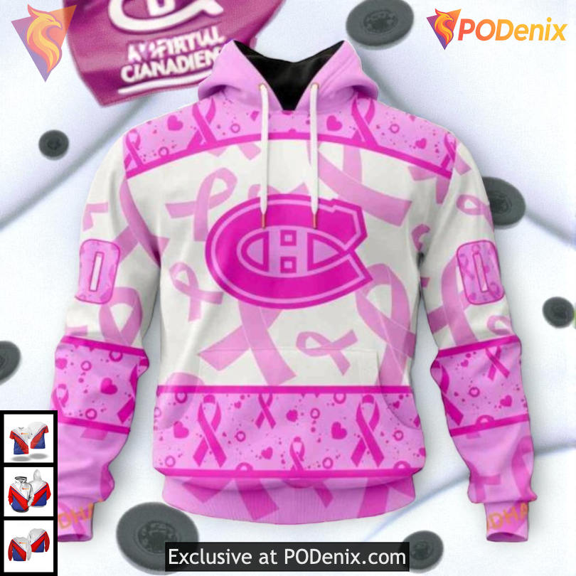 Stylish Montreal Canadiens 3D Zip Up Sweatshirt for Pink October Awareness