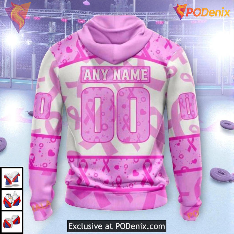 The Montreal Canadiens Zip Up Hoodie showcases a vibrant design that celebrates Pink October, featuring striking pink hues and dynamic graphics that embody the spirit of awareness. Perfect for fans, it combines style with a strong message of support.