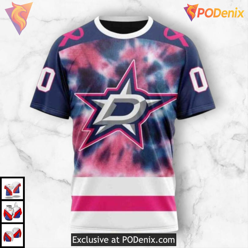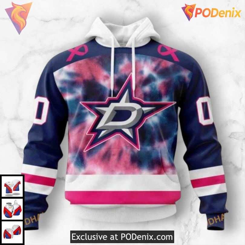 Custom 3D Dallas Stars Youth Apparel: Pink October Awareness Tribute Hoodie