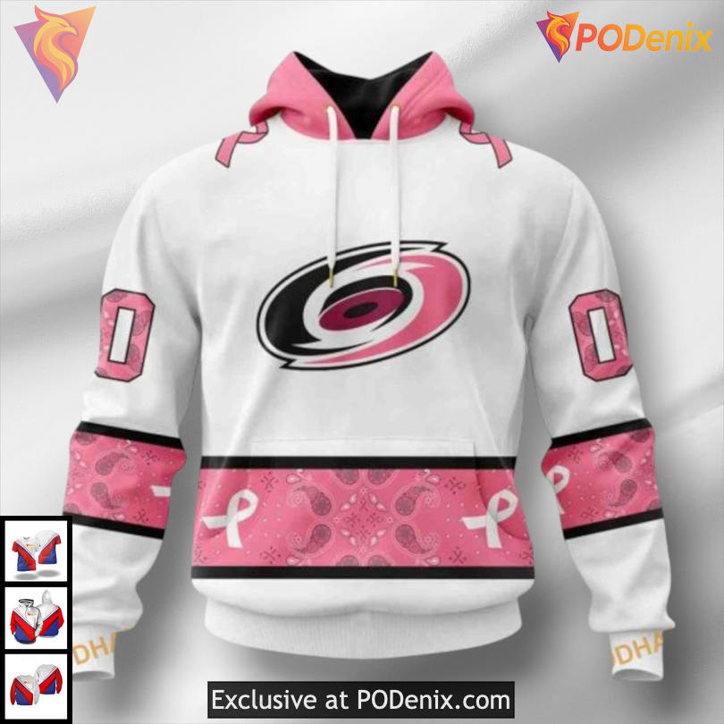 Custom 3D Carolina Hurricanes Apparel – Pink October Breast Cancer Awareness Edition Hoodie
