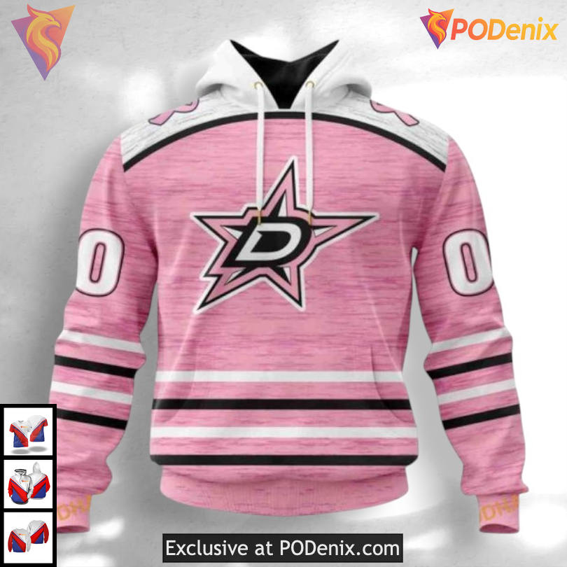 Product Information for Pink Ribbon Awareness Tribute Dallas Stars Mens Hoodie Custom 3D Shirt: