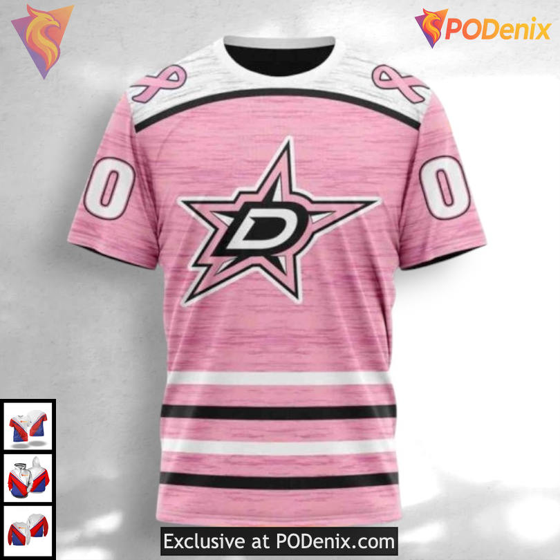 Dallas Stars Custom 3D Shirt: Pink Ribbon Awareness Tribute for Fans