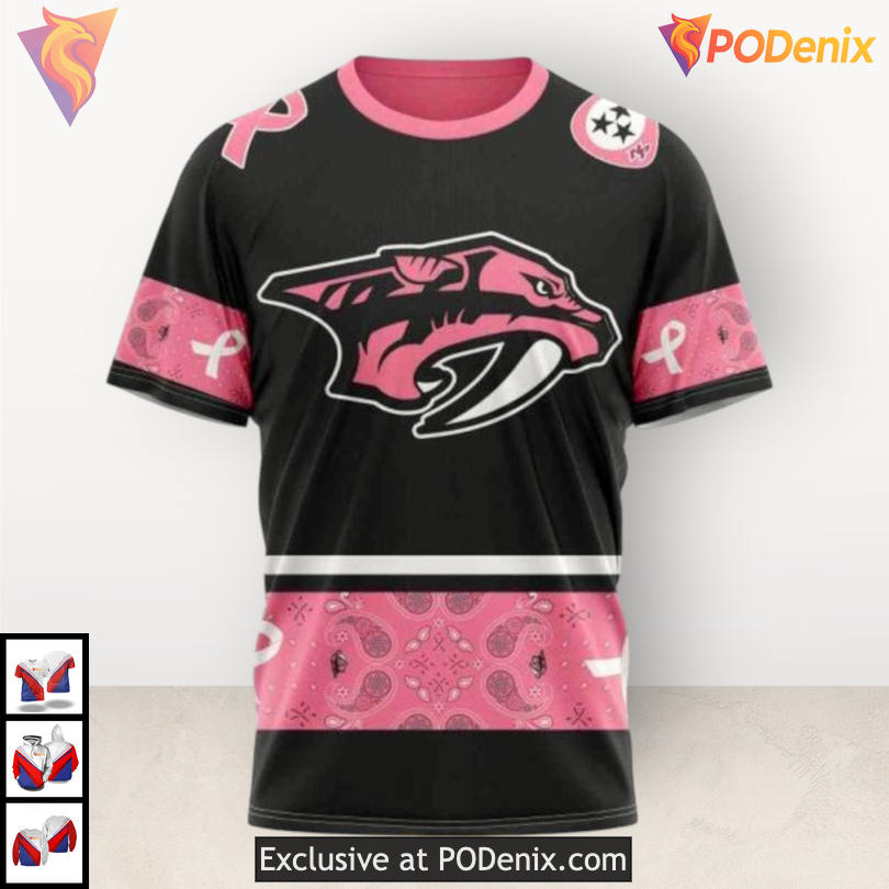 Custom Pink Ribbon Nashville Predators Hoodie – A Tribute to Awareness and Team Spirit