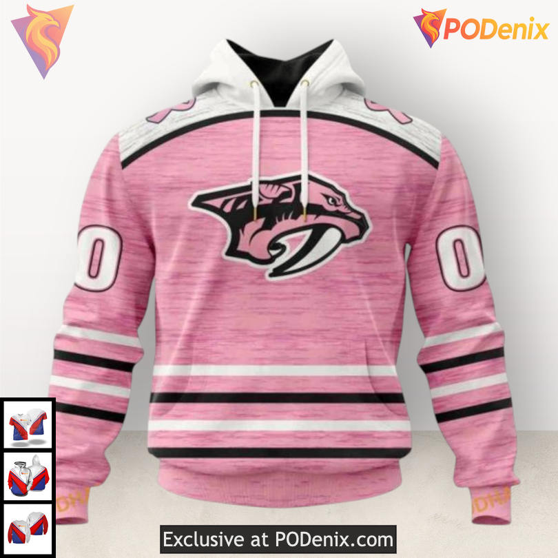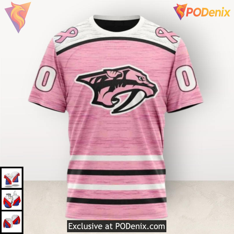 Custom 3D Breast Cancer Awareness Apparel: Pink Ribbon Fight with Nashville Predators Spirit