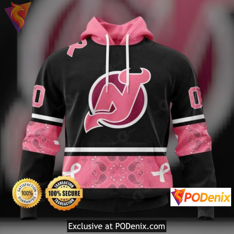 Personalized New Jersey Devils Awareness Hoodie for Pink Ribbon Solidarity