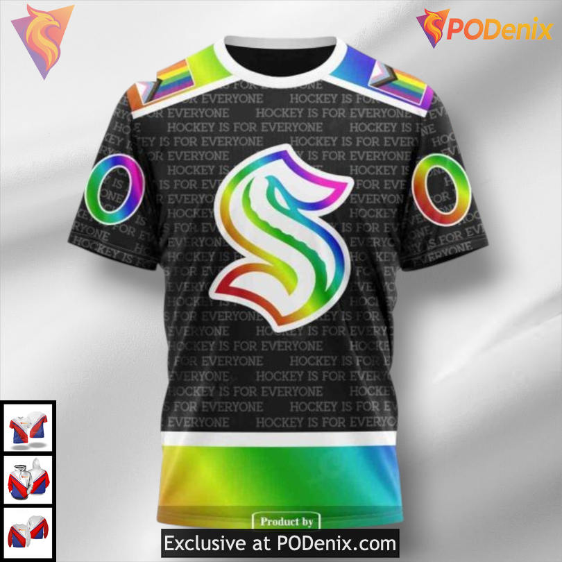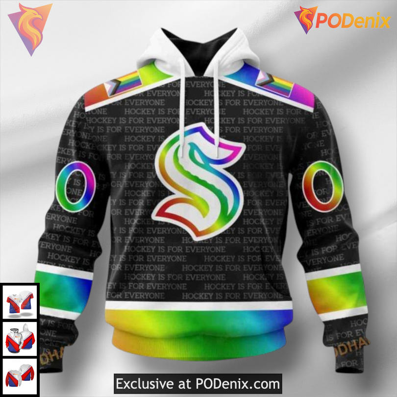 Product Information for Pride Gradient Color Design Hockey Style Seattle Kraken Hoodie 3D Custom NHL: