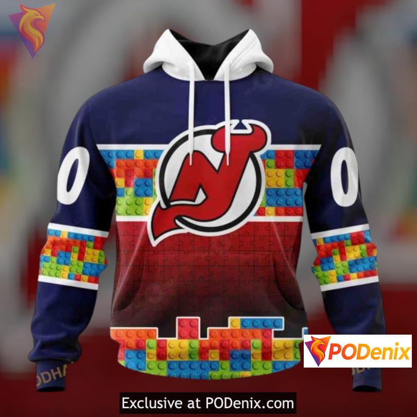 Experience the New Jersey Devils Puzzle Game Hoodie with Unique Art for Fans