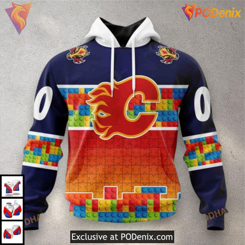 With personalized calgary flames puzzle game hoodies, fans can express their unique identity, showcasing their passion for the game and connecting with fellow supporters through vibrant designs that reflect their love for hockey.