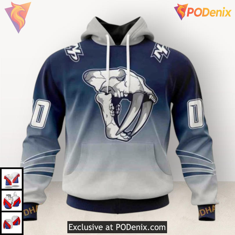 This hoodie is a celebration of sports culture and city pride, reflecting the essence of Nashville. Fans wear this custom piece not just to support their team but to connect with a legacy of rivalry and community that defines the Nashville Predators.