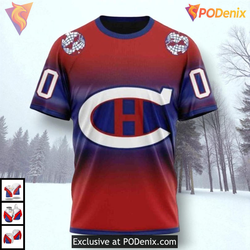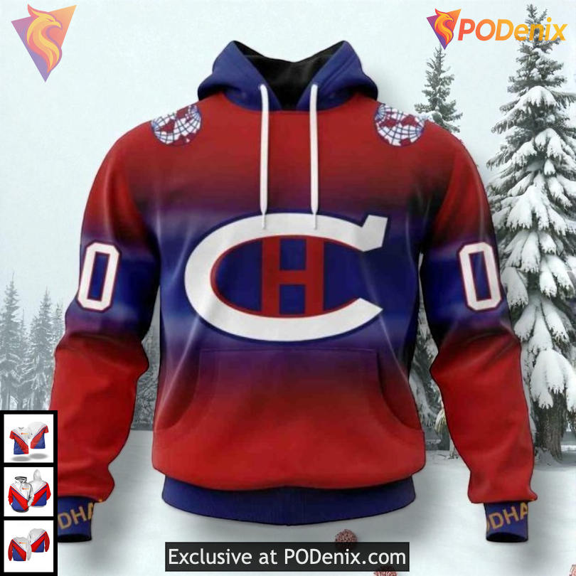 Product Information for Retro Gradient Color Concept NHL Montreal Canadiens Holiday Hoodie 3D: