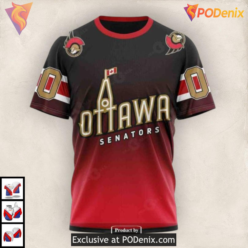 The Retro Ottawa Senators Hoodie showcases a stunning gradient of colors that captures the essence of nostalgia. With its vibrant hues and dynamic design, this hoodie pays homage to the rich history of the Senators, energizing fans with every wear.