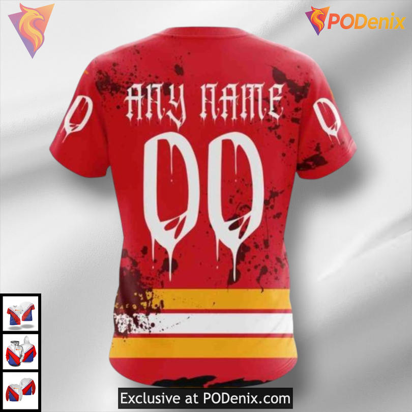 This design reflects spooky halloween themes in calgary flames apparel, capturing the thrill of rivalry during the season. It’s a perfect representation of the passionate fan culture that unites supporters in celebration and camaraderie.