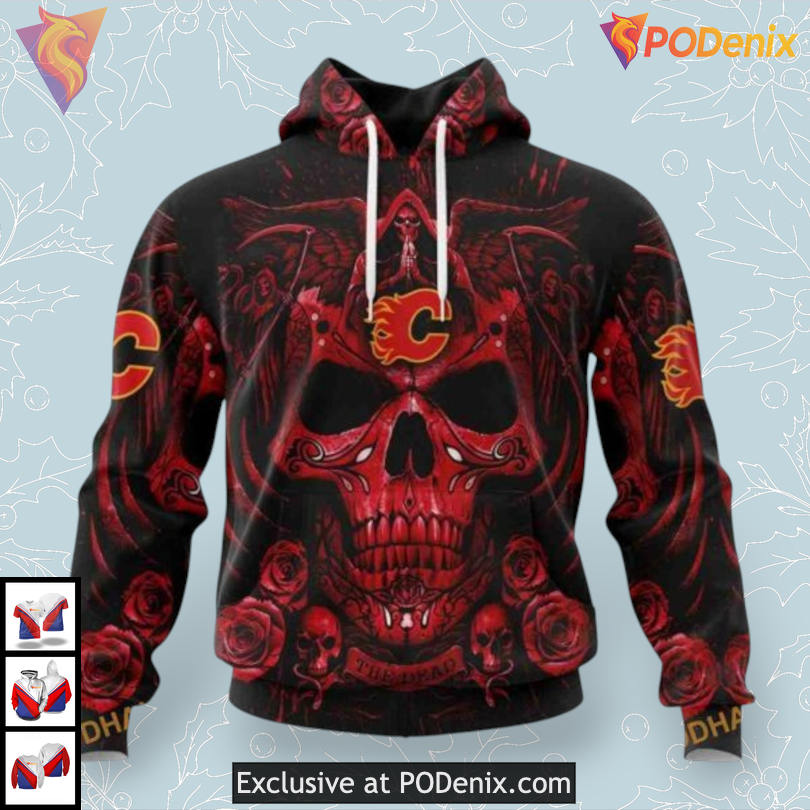 With skull art themes in calgary flames culture, this hoodie embodies the fierce spirit of the team. Fans embrace these elements as part of their rituals, celebrating victories and uniting during challenges, reinforcing their loyalty to the Flames.