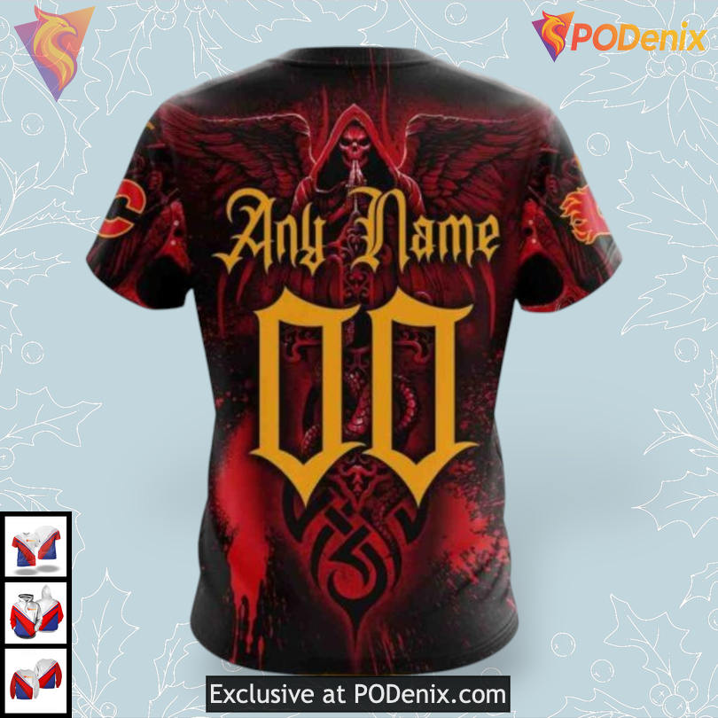 Custom Number Calgary Flames Apparel: Skull Art Concept Hoodie for True Fans