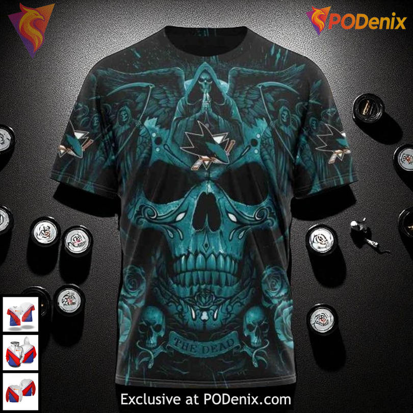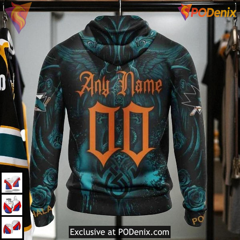 Custom San Jose Sharks Youth Apparel: Skull Art Graphic Concept Hoodie