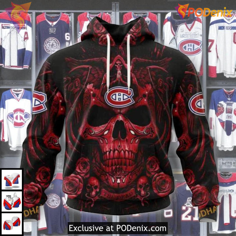 Product Information for Skull Art Graphic Concept NHL Montreal Canadiens Full Print Hoodie 3D: