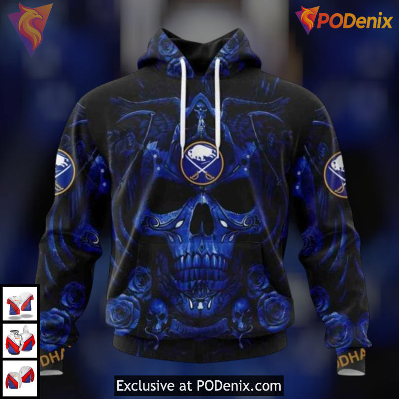 Product Information for Skull Art Graphic Design Personalized Buffalo Sabres Hoodie 3D NHL Apparel: