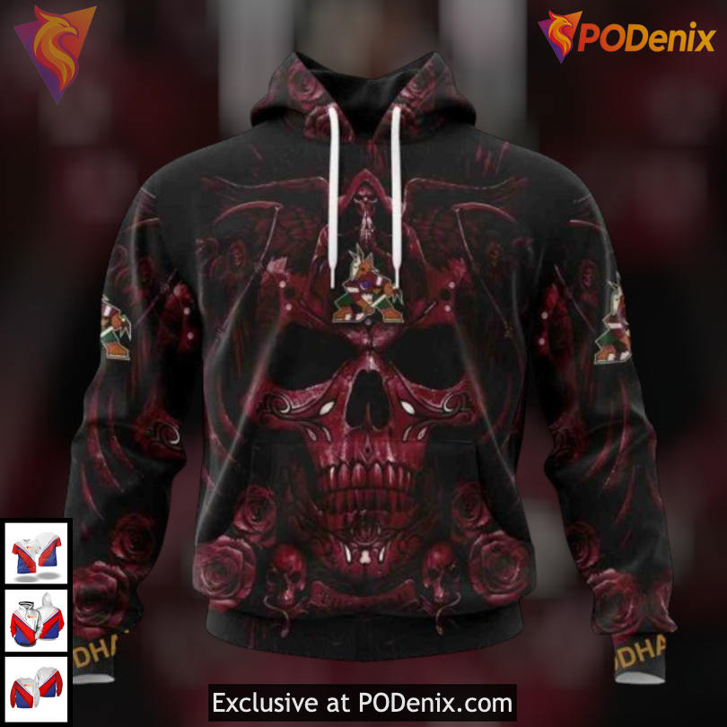 Custom Arizona Coyotes Graphic Hoodie: Skull Artwork Tribute for Fans