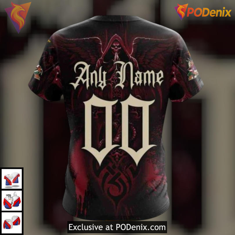 The Personalized Arizona Coyotes Hoodie showcases a striking skull design that captures the fierce spirit of hockey fandom. With bold graphics and an energetic vibe, this hoodie is perfect for any die-hard Coyotes supporter looking to make a statement.