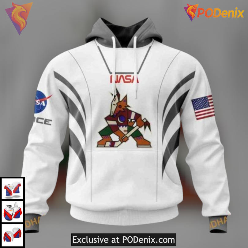 Product Information for Space Force NASA Astronaut Tribute Custom Number Arizona Coyotes Hoodie Apparel: