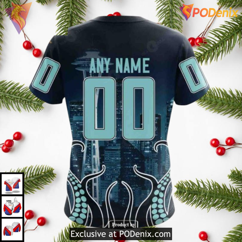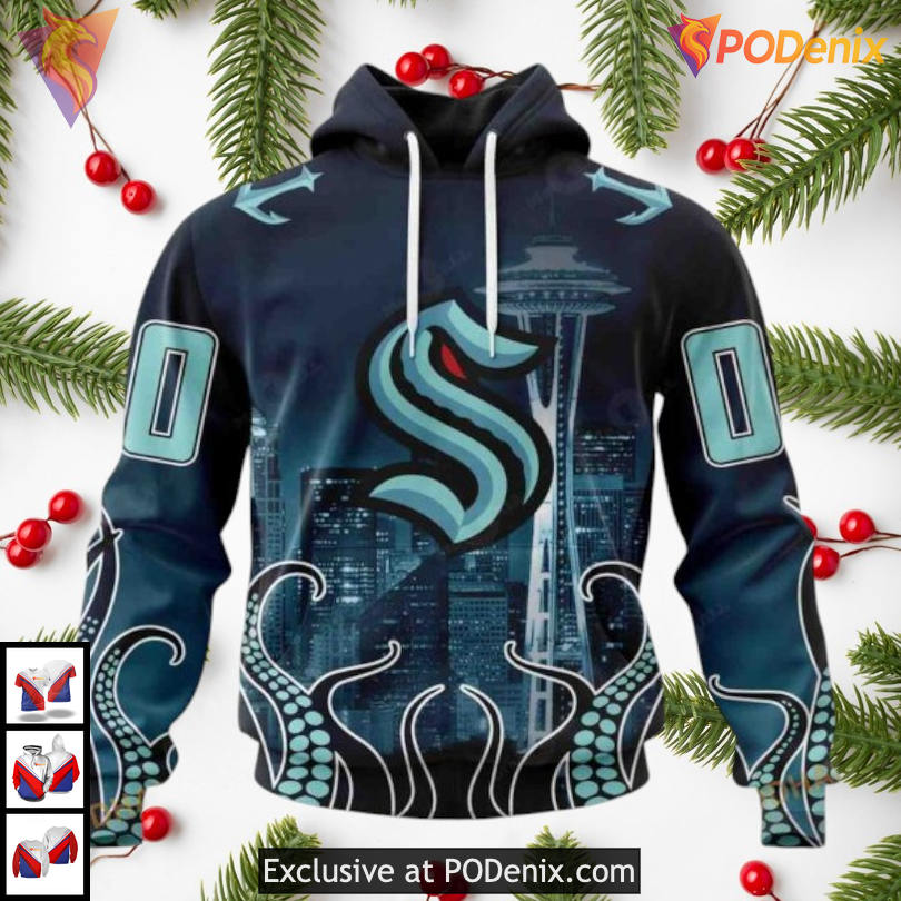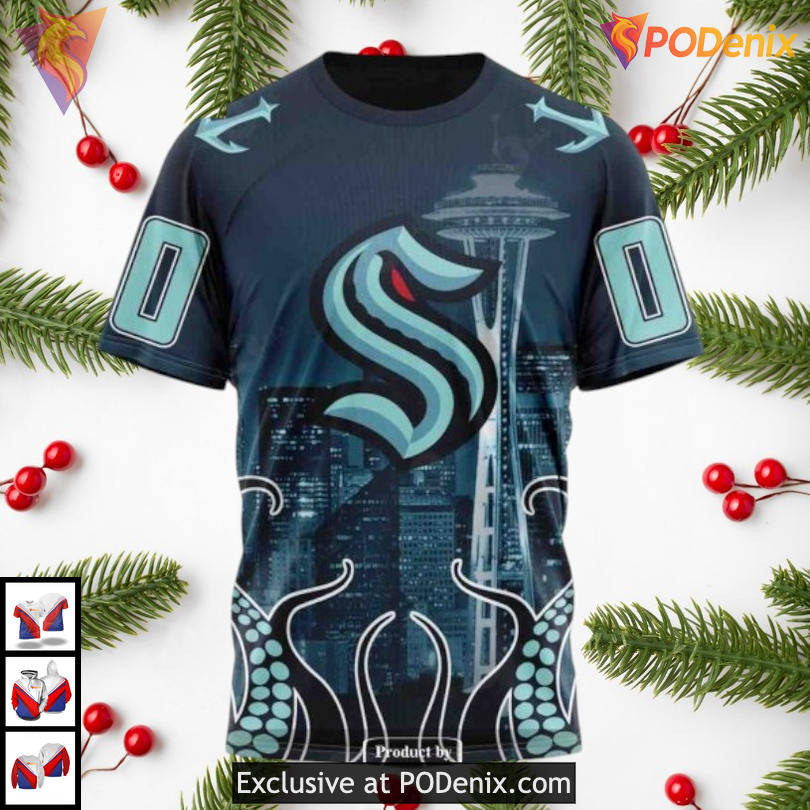 Seattle Kraken Skyline Artwork Apparel – Holiday Cheer & Fandom Vibes