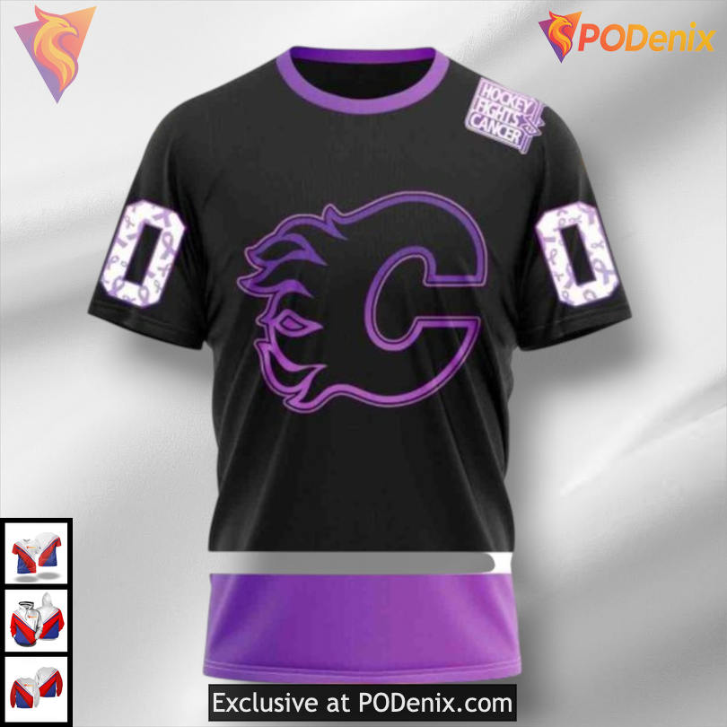 Buy Black Hockey Fights Cancer Apparel: Special Calgary Flames Hoodie 3D for Awareness