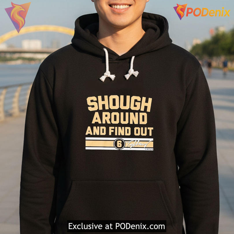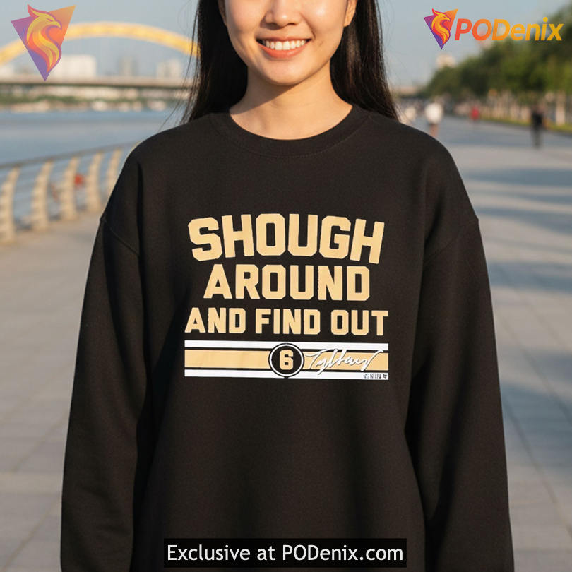 The shough around and find out shirt bursts with energy and creativity, showcasing a dynamic design that resonates with sports fans. Featuring vibrant colors and playful graphics, this shirt embodies the spirit of camaraderie and competition, making it a must-have for any sports enthusiast.