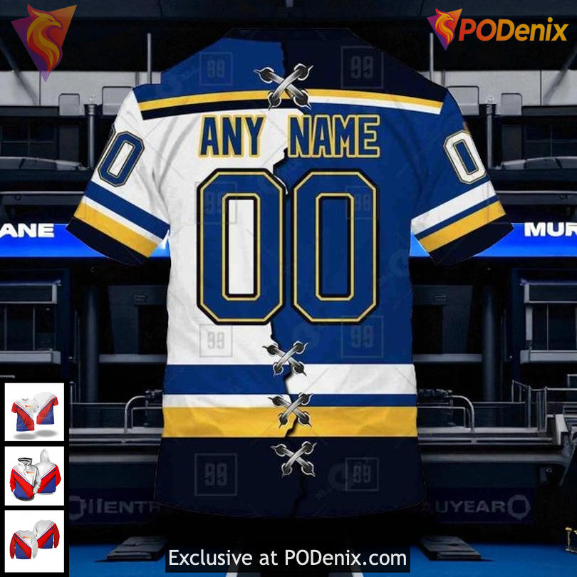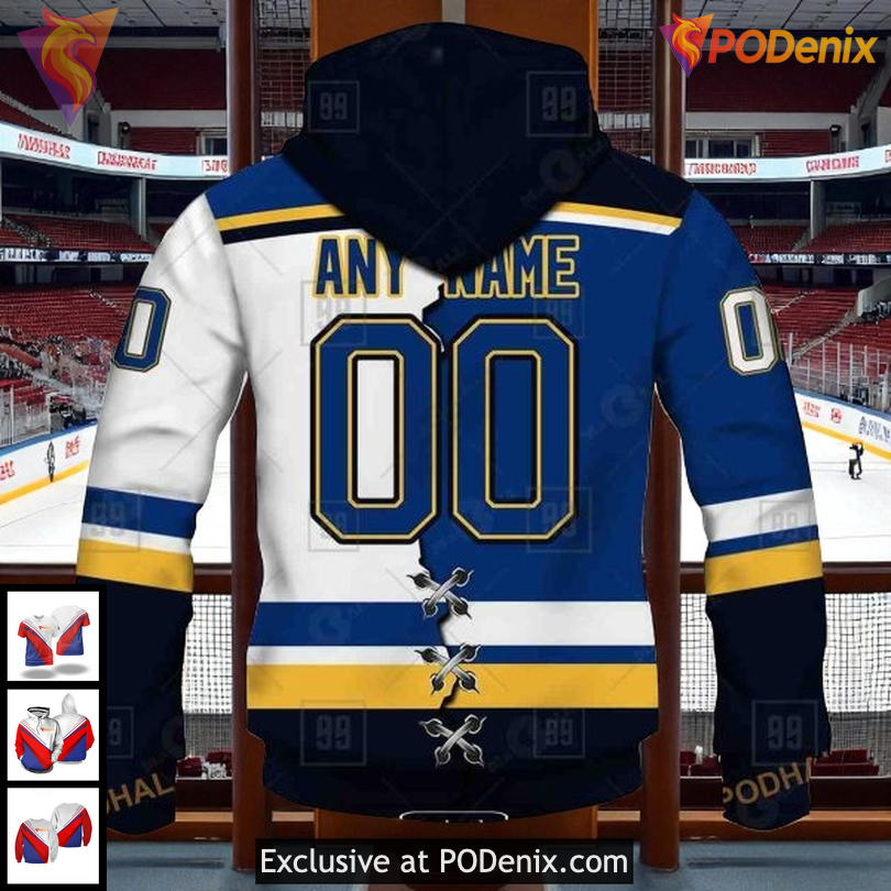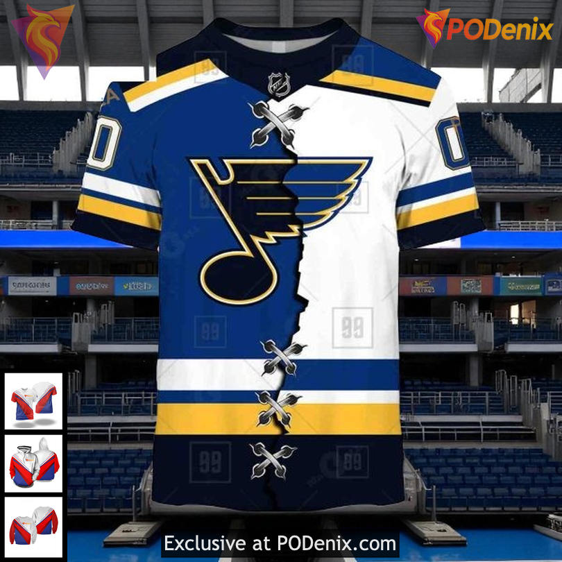 Product Information for St Louis Blues Hoodie 3D Custom NHL Mix Color Jersey Design Fan Apparel: