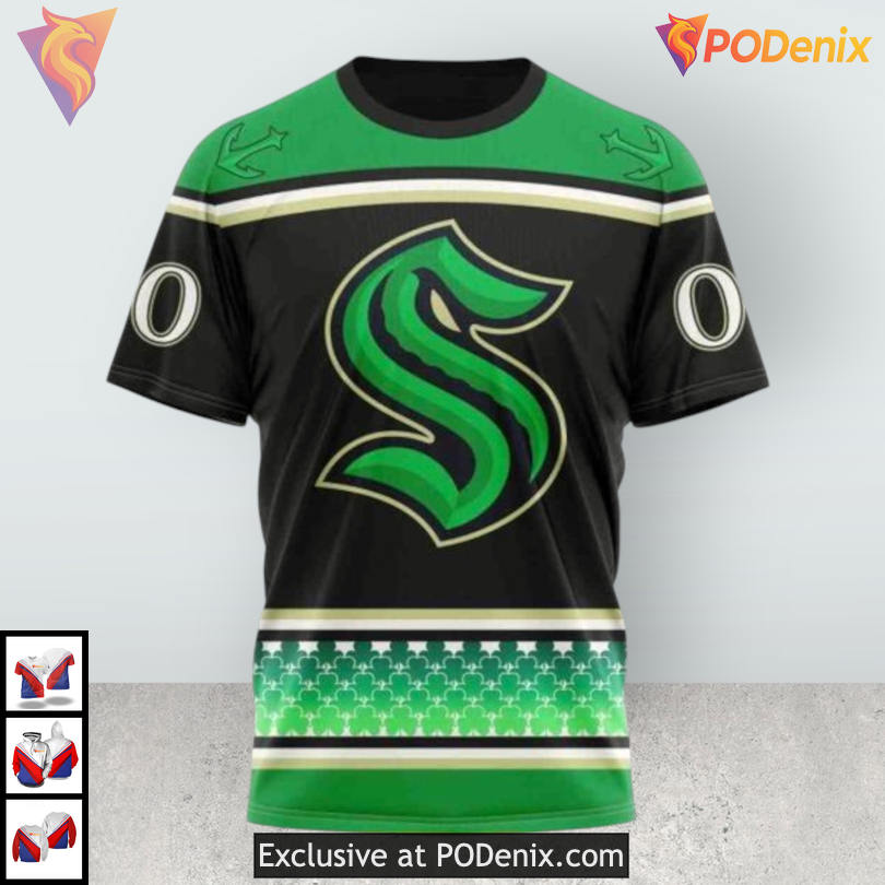 Custom Seattle Kraken Themed Apparel for St. Patrick’s Day Hockey Celebration