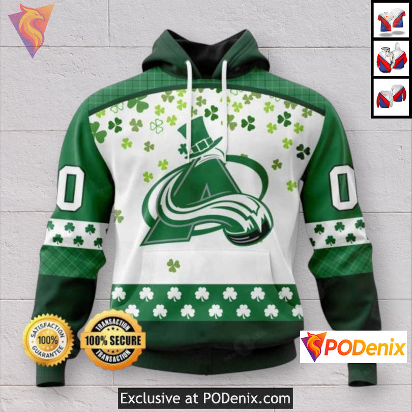 Product Information for St Patricks Day Shamrock Design Colorado Avalanche Retro Hoodie Custom 3D: