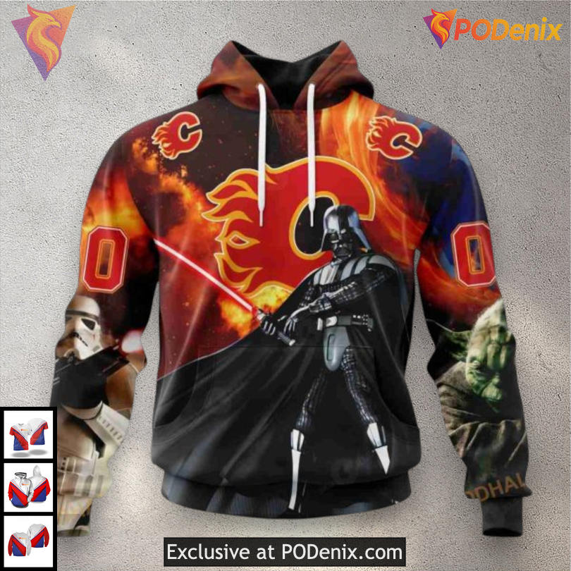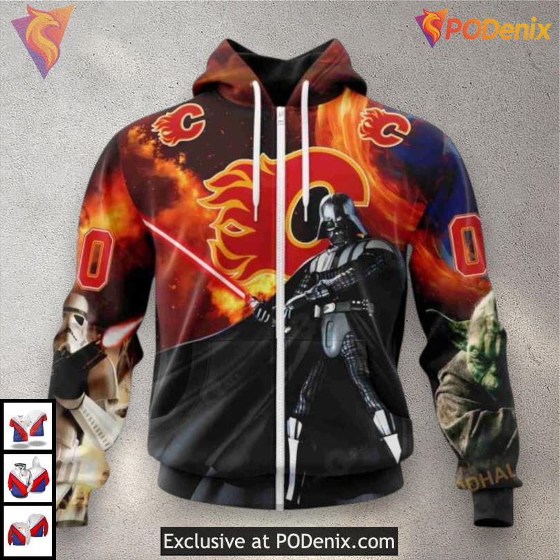 Product Information for Star Wars Collaboration Custom Personalized Calgary Flames Hoodie 3D: