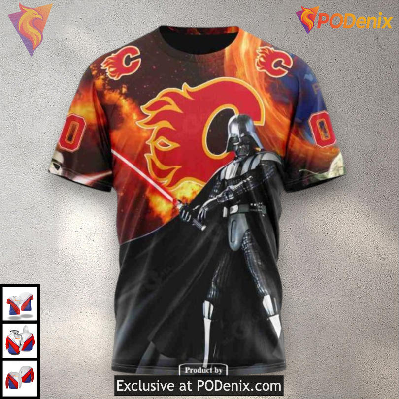 Custom Calgary Flames 3D Apparel: Star Wars Characters Unite in Hockey Passion