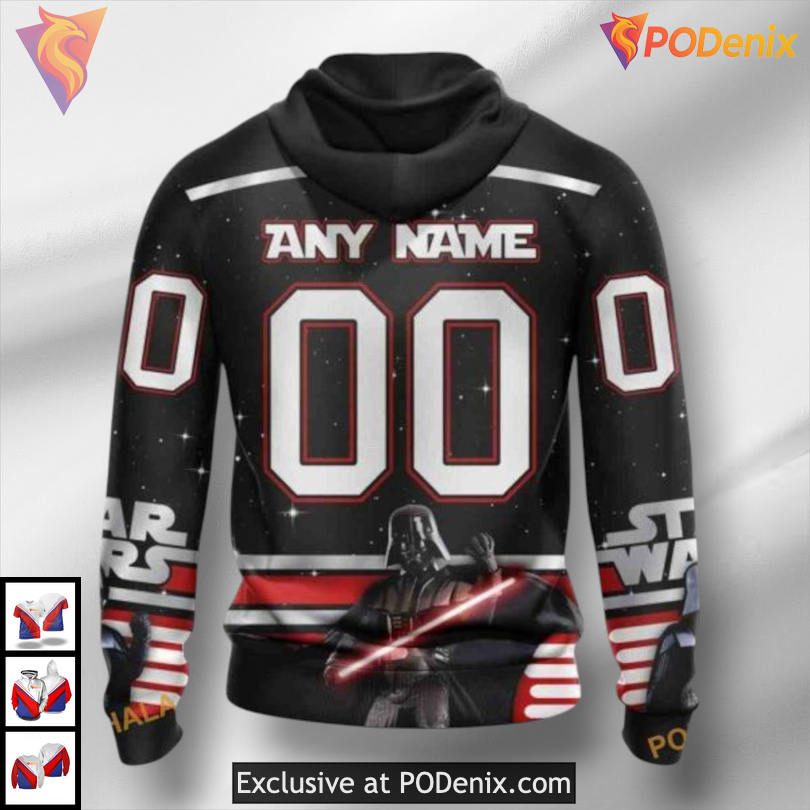 With its custom 3D star wars tribute design, this hoodie embodies a sense of community and shared excitement among fans, making it an essential piece for any event or gathering that celebrates both hockey and sci-fi lore.