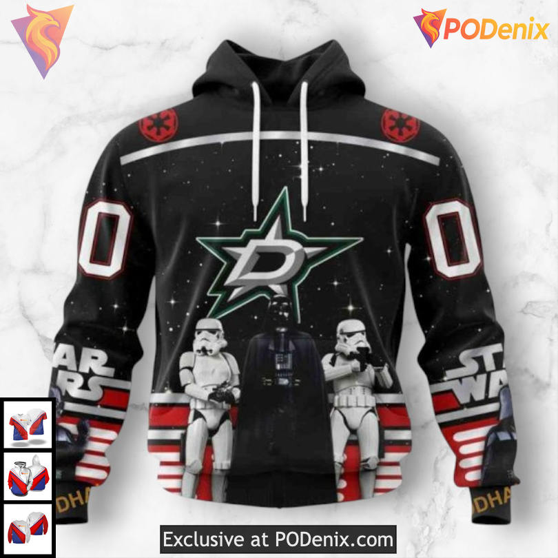 Custom Retro Dallas Stars Apparel: May The 4th Star Wars Tribute Style Hoodie