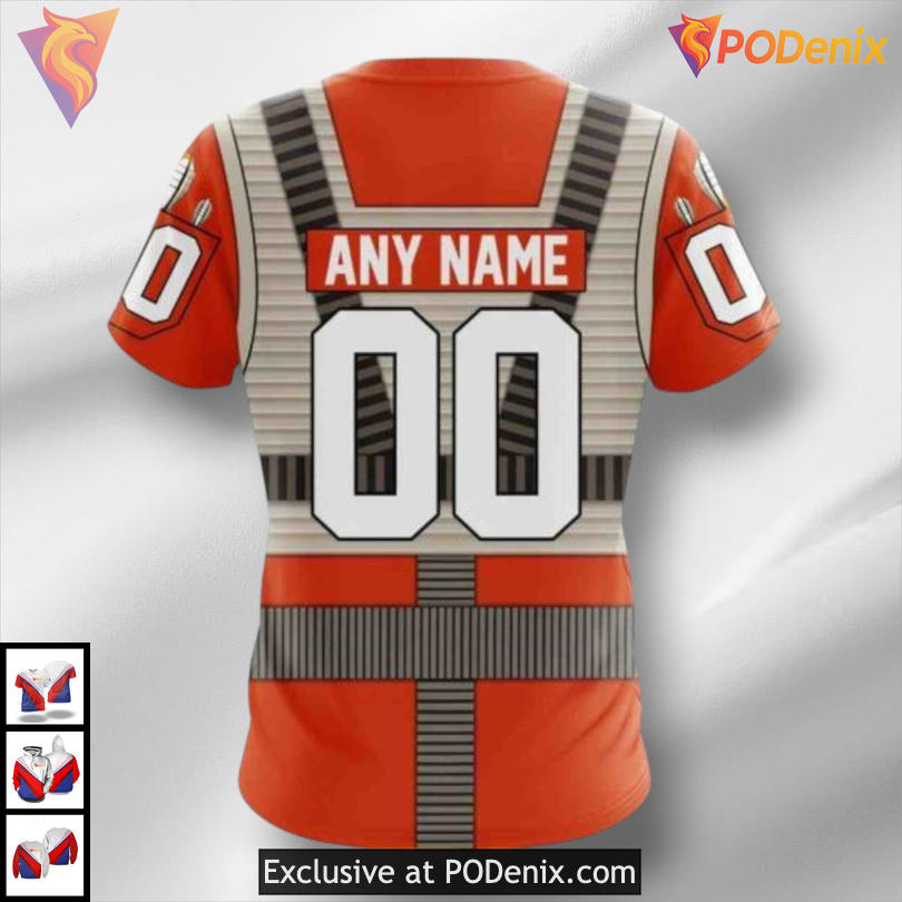 The Calgary Flames 3D Hoodie showcases a dynamic design inspired by the iconic Star Wars rebel pilots. With striking motifs and vibrant colors, this hoodie embodies the energy of fandom, merging the spirit of hockey with a beloved cinematic universe.