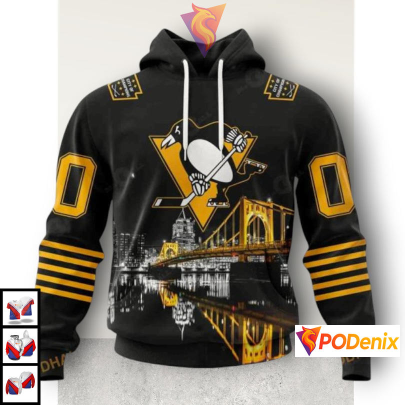 Product Information for Steel City "City of Champions" Design Pittsburgh Penguins Personalized 3D Hoodie NHL Edition: