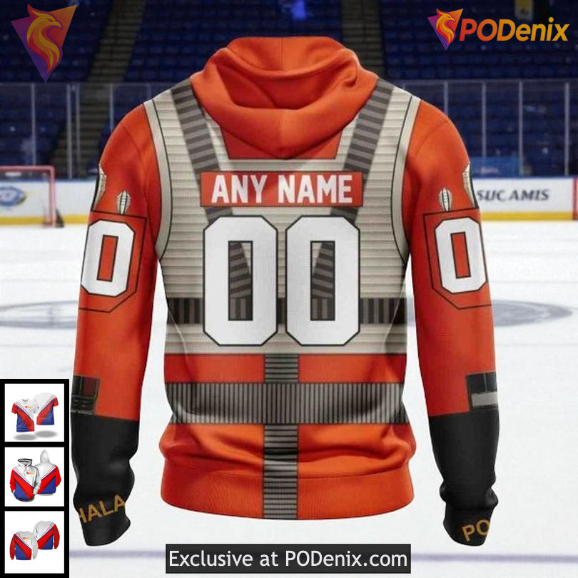 This Tampa Bay Lightning Pullover Hoodie blends hockey culture with sci-fi inspiration, giving fans a playful yet meaningful way to express loyalty. The striking orange design and Rebel theme highlight the team’s energy while adding a layer of fandom pride.