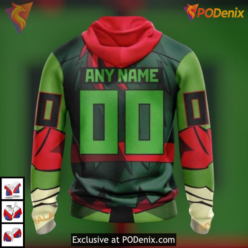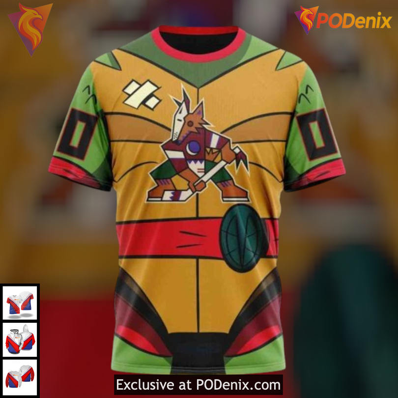 The Arizona Coyotes 3D Hoodie features a striking design that captures the essence of fandom. With vibrant colors and dynamic graphics, this hoodie showcases the spirit of the team, blending energy with a playful nod to the beloved Teenage Mutant Ninja Turtles.
