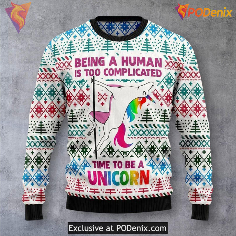 Festive Unicorn Fantasy Art Apparel: Time To Be A Unicorn Christmas Sweater