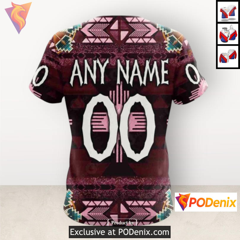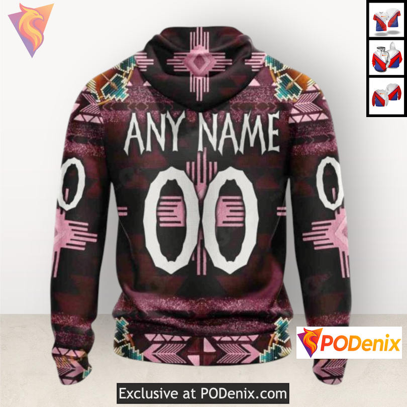 The Colorado Avalanche Team Hoodie showcases a vibrant design that pays homage to traditional native costumes, featuring intricate patterns that resonate with cultural significance. The bold colors and dynamic motifs bring an electrifying energy that captures the spirit of the fans, making it a must-have for any supporter.